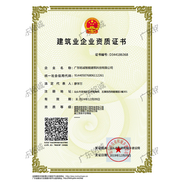 廣東銘誠智能建筑科技有限公司成立于2008年,公司注冊資金為6000萬元,集辦公裝修、酒店裝修、家庭裝修、軟裝裝飾、娛樂場所裝修為一體的裝飾公司,率先提出“創造現代人文空間,挑戰業界高峰”的雄壯口號,并以此為目標,完成了一大批具有影響力的大型公裝工程:其中包括廣州國際中醫藥展貿中心、奧飛澄海音樂廳、澄海區國家稅務局、澄海興信小額貸款、澄海潮商村鎮銀行、汕頭龍湖賓館、澄海豪庭大酒店、御園國際飲食城、澄海福晉軒酒家、享樂匯保健有限公司、假日商務酒店、尚景康園物業、星輝車模股份有限公司、奧飛動漫有限公司、香港國際玩具、汕頭萬基貿易有限公司、泰興源實業有限公司、汕頭皇冠玩具有限公司等;家裝工程包括南澳黃金海岸整幢的精裝房、中信華府、富春華庭、金信鳳凰名城、凱旋花園、中信金城、柏嘉半島、陽光海岸、金葉島等高等住宅。 ? 廣東銘誠智能建筑科技有限公司經過十余年的建筑裝飾裝修施工領域項目積淀,于2018年2月取得“建筑裝修裝飾工程專業承包二級”、“建筑機電安裝工程專業承包三級”、“建筑工程施工總承包三級”、“施工勞務不分等級”、“安全生產許可證”等專業資質,并于2021年8月建筑裝修資質正式升級為“建筑裝修裝飾工程專業承包一級”。這是對企業規模、工程業績、管理水平、誠信表現的肯定,是企業實力與能力的展現。 ? 公司每一項工程都始終堅持“精美設計、精心施工、確保合同承諾;勤奮開拓、追求突出、創造時代精品”的質量方針,力爭做一項工程,樹一座豐碑。 ? ?銘誠擁有一支由專業的營銷精英和客戶顧問組成的營銷隊伍,勤奮、敬業的每一位銘誠員工將本著“贏在別人休息時”的專業精神,為客戶提供全程營銷及售后服務,確保客戶的合法利益,提供體貼周到的服務,做到讓顧客滿意。 ? 銘誠擁有一批資老牌室內環境設計師,以“現代人文空間”為設計理念,為客戶提供人性化、差異化、智能化的室內環境設計服務,準確的將人性化特點與室內環境相融合,達到了“現代人文空間”的和諧統一。 ? ? ? ?自主創新、視社會責任為己任的精神使我們在發展的道路上屢獲殊榮:不斷提升的銘誠品牌知名度和美譽度,靠的是優質的產品,靠的是不斷提升的營業績,靠的是國內的核心技術和誠信的服務。相信通過銘誠人的努力,銘誠將會不斷以新的姿態為提升廣大消費者的生活質量做好服務,為中國裝飾行業設計創新做出突出貢獻。 ? ? “忘掉競爭、共